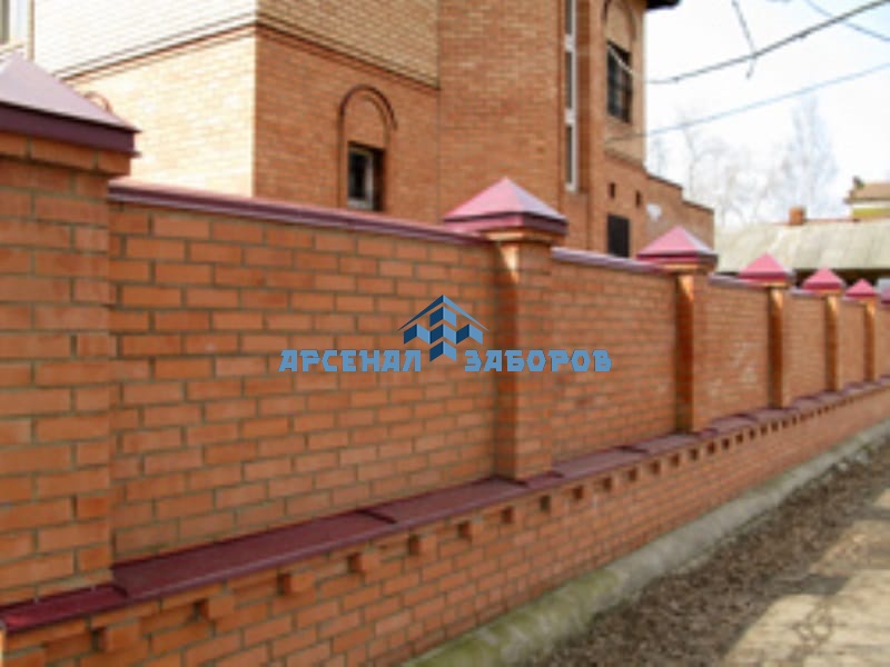 Кирпичный забор сплошной 70 метров