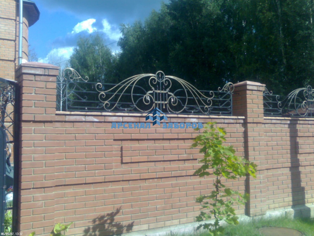 Кирпичный забор с ковкой 12 соток